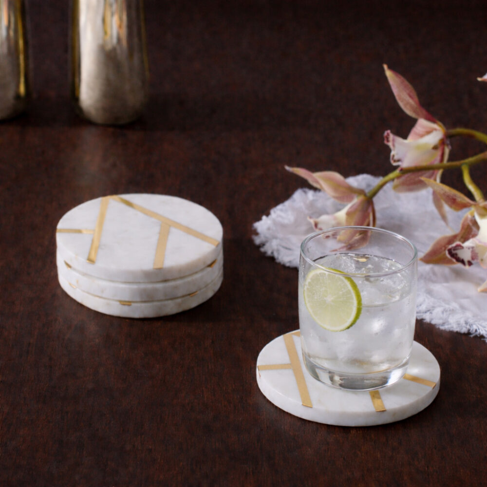 Marble & Brass Inlay Coasters – Set of 4