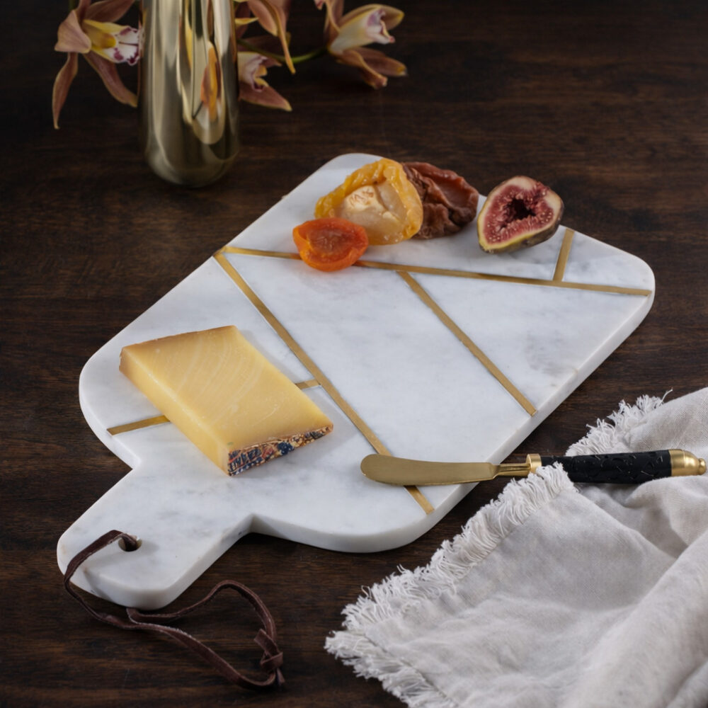 Marble & Brass Inlay Paddle Cheese Board