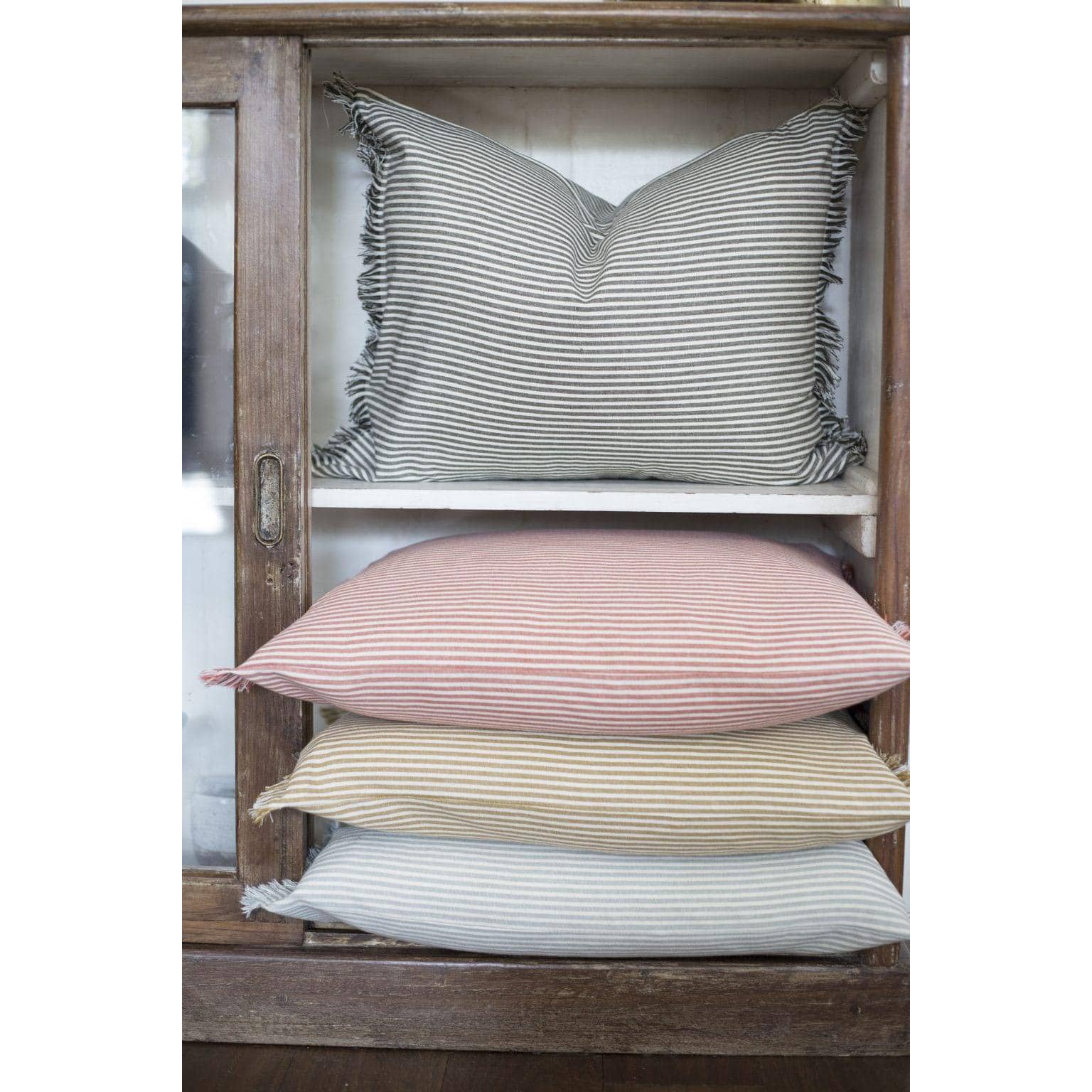A simple ruby terracotta and taupe ticking stripe cushion. Style this cushion in any room and mix and match with the other cushions from the Abby Bee and Olive Grove ranges to create a variety of different looks.