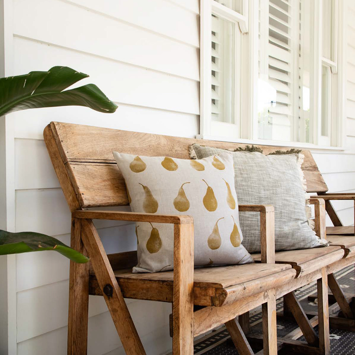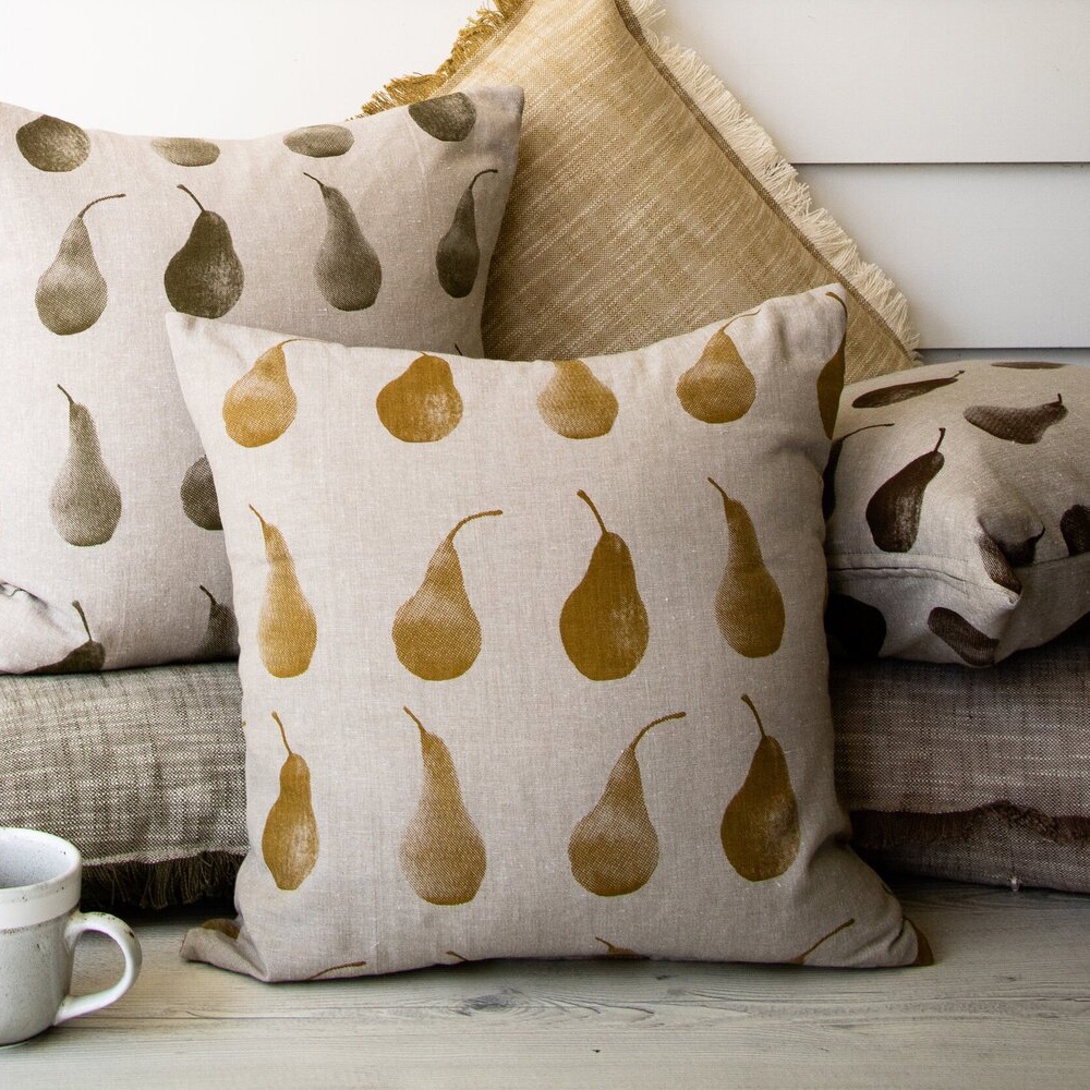 The pear pattern sets a contemporary feel to any lounge or bedroom. The subdued colours matched with a neutral background make an ideal complimentary cushion or stand alone cushion for any interior.